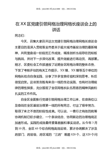 在XX区党建引领网格治理网格长座谈会上的讲话.doc