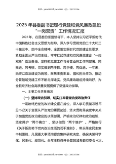 2025年县委副书记履行党建和党风廉政建设“一岗双责”工作情况汇报.doc