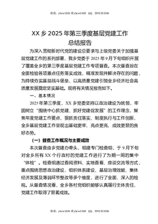XX乡2025年第三季度基层党建工作总结报告.docx