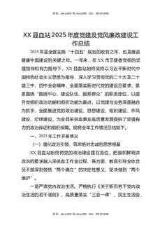 XX县血站2025年度党建及党风廉政建设工作总结.docx
