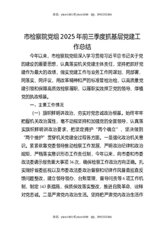市检察院党组2025年前三季度抓基层党建工作总结.docx