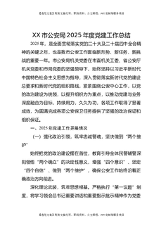 XX市公安局2025年度党建工作总结.docx