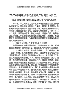 2025年党组织书记全面从严治党主体责任、抓基层党建和党风廉政建设工作情况总结.docx