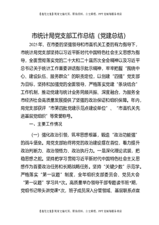 市统计局党支部2025年度工作报告(党建总结).docx