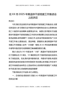 在XX市2025年离退休干部党建工作推进会上的讲话.docx