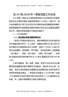区XX局2026年一季度党建工作总结.docx