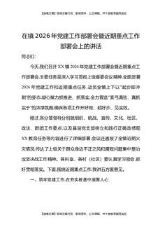 在XX镇2026年党建工作部署会暨近期重点工作部署会上的讲话.docx