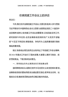 在镇2026年党建工作部署会暨近期重点工作部署会上的讲话.docx
