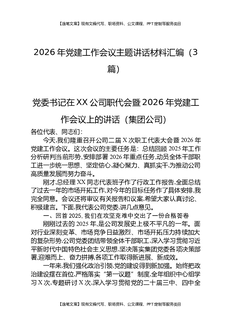 2026年党建工作会议主题讲话材料汇编(3篇).docx