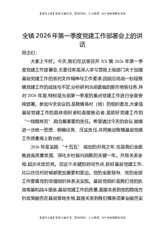 全镇2026年第一季度党建工作部署会上的讲话.docx