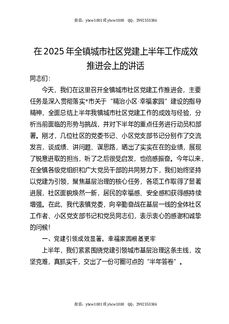 全镇城市社区党建上半年工作成效推进会上的讲话.docx