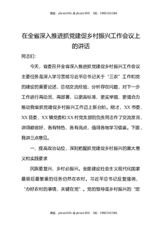 在全省深入推进抓党建促乡村振兴工作会议上的讲话.docx