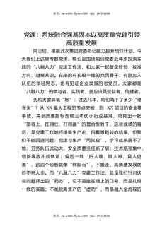 党课:系统融合强基固本以高质量党建引领高质量发展.docx
