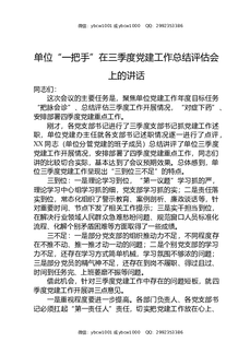 单位“一把手”在三季度党建工作总结评估会上的讲话.docx