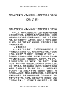 局机关党支部2025年前三季度党建工作总结汇编(7篇).docx