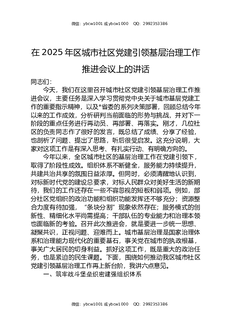 在2025年区城市社区党建引领基层治理工作推进会议上的讲话.docx