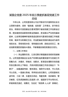 某国企党委2025年前三季度抓基层党建工作总结.docx