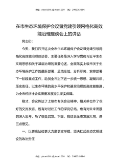 在市生态环境保护会议暨党建引领网格化高效能治理座谈会上的讲话.docx