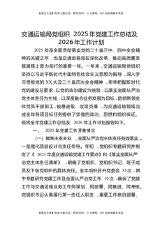 交通运输局党组织2025年党建工作总结及2026年工作计划.docx