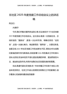 在社区2025年度党建工作总结会议上的讲话稿.docx