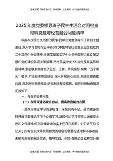 2025年度党委领导班子民主生活会对照检查材料党建与经营融合问题清单.docx