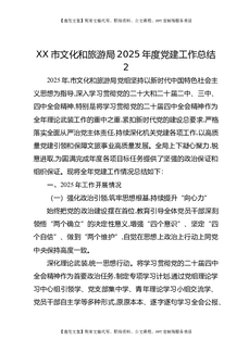 XX市文化和旅游局2025年度党建工作总结2.docx