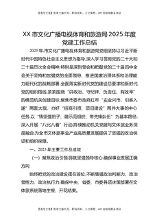 XX市文化广播电视体育和旅游局2025年度党建工作总结.docx