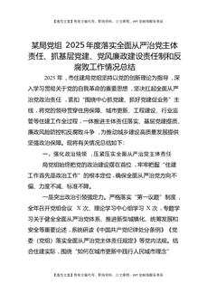某局党组2025年度落实全面从严治党主体责任、抓基层党建、党风廉政建设责任制和反腐败工作情况总结.docx