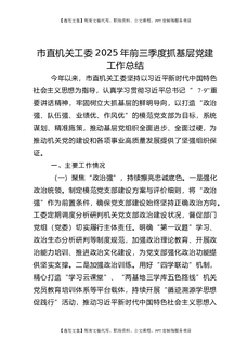 市直机关工委2025年前三季度抓基层党建工作总结.docx