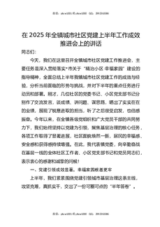 在2025年全镇城市社区党建上半年工作成效推进会上的讲话.docx