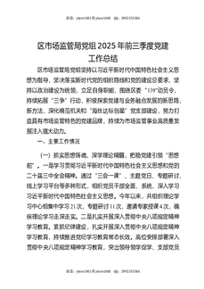 区市场监管局党组2025年前三季度党建工作总结.docx