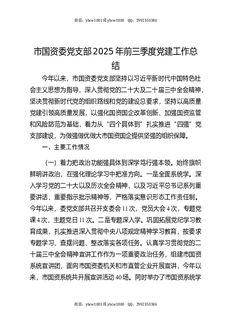 市国资委党支部2025年前三季度党建工作总结.docx