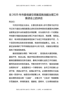 在2025年市委党建引领基层高效能治理工作推进会上的讲话.docx