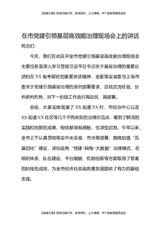在市党建引领基层高效能治理现场会上的讲话.docx