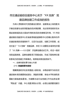 市交通运输综合服务中心关于XX先锋党建品牌创建工作成效的报告.docx