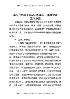 市统计局党支部2025年前三季度党建工作总结.docx