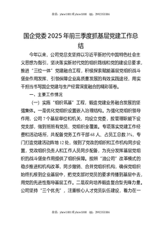 国企党委2025年前三季度抓基层党建工作总结.docx