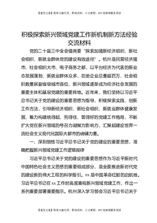 积极探索新兴领域党建工作新机制新方法经验交流材料.docx