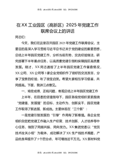 在XX工业园区(高新区)2025年党建工作联席会议上的讲话.docx