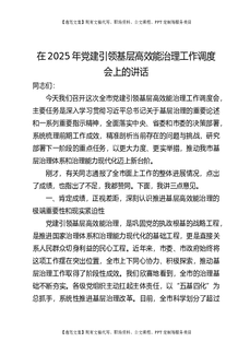 在2025年党建引领基层高效能治理工作调度会上的讲话.docx