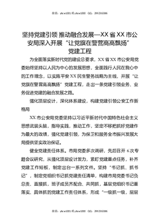 坚持党建引领推动融合发展—XX省XX市公安局深入开展“让党旗在警营高高飘扬”党建工程.docx