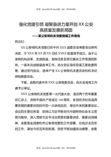强化党建引领凝聚奋进力量开创XX公安高质量发展新局面——某公安局机关党委换届工作报告.docx