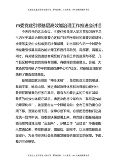 市委党建引领基层高效能治理工作推进会讲话.docx