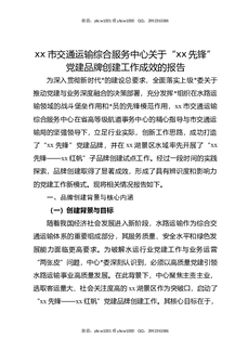 XX市交通运输综合服务中心关于“XX先锋”党建品牌创建工作成效的报告.docx