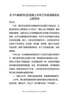 在XX镇城市社区党建上半年工作成效推进会上的讲话.docx