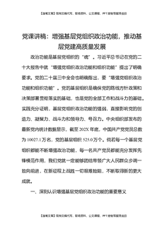 党课讲稿:增强基层党组织政治功能,推动基层党建高质量发展.docx