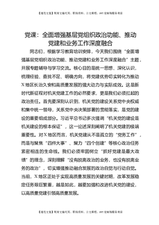 党课:全面增强基层党组织政治功能、推动党建和业务工作深度融合.docx