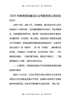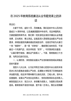 2025年教育系统廉洁从业专题党课上的讲话.docx