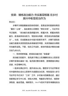 党课:锤炼政治能力,夯实基层根基,在乡村振兴中彰显担当作为.docx