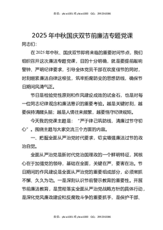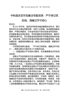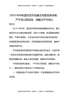 中秋国庆双节前廉洁专题党课:严于律己筑防线,清廉过节守初心.docx